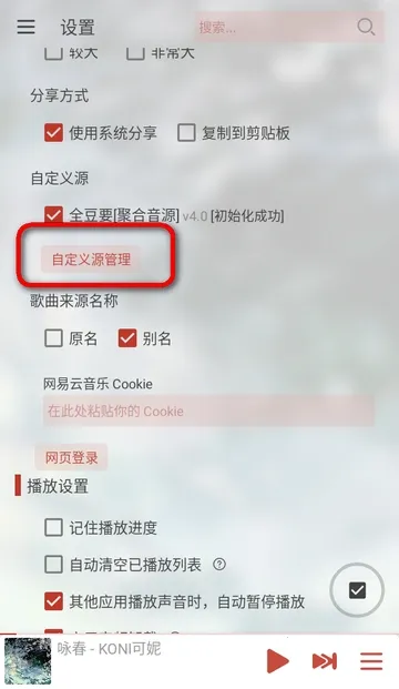 2、在设置中找到自定义源管理。