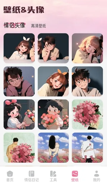 5、点击壁纸,可保留喜欢的情侣头像、高清壁纸等