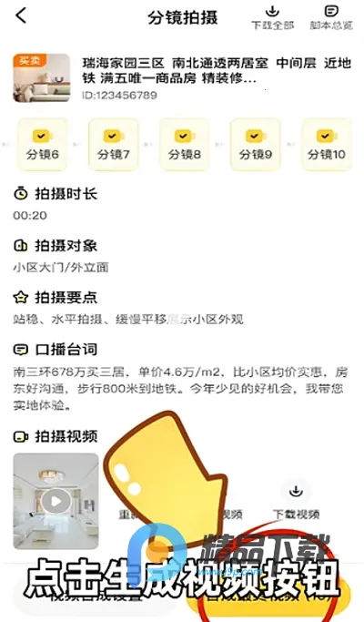 5、按照上方的核心卖点台词配合视频画面来介绍房屋