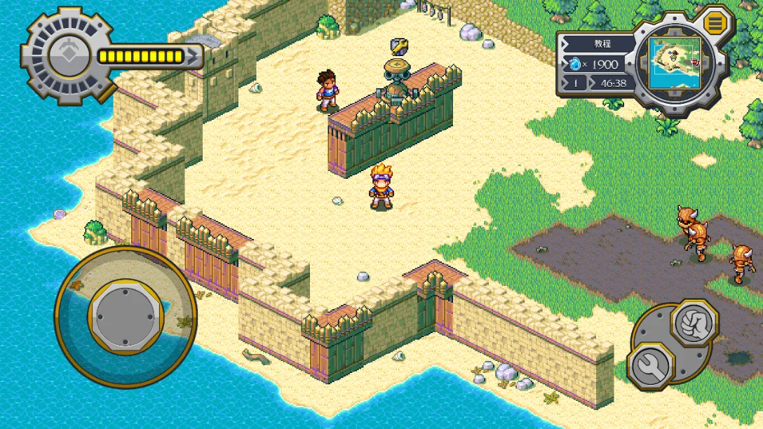 玩法上,下载安装后点击开始,先经历剧情,之后爷爷会给任务,比如去海边修筑围墙。修筑时可拖动围墙放置,放错能旋转或售卖。敌人进攻就建造炮台抵御,击败敌人可搜刮源能用于建造或修理构筑物。战斗中,左边摇杆控制角色移动,右边按钮和NPC互动,点击左下方切换建筑,放置好后点左上角红色按钮开战,还能亲自操控角色或让炮塔作战。