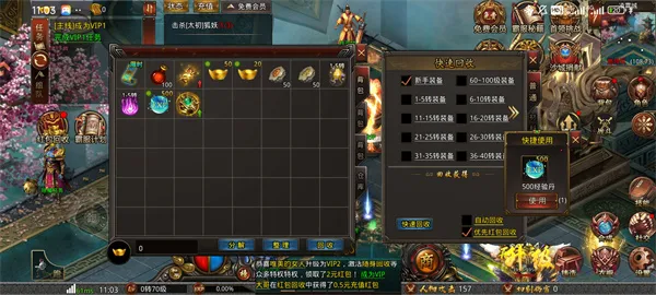 2、开局阶段不要盲目刷野怪,优先推进主线任务。主线不仅经验高,还能依次解锁装备回收、VIP成长、行会系统等关键功能。