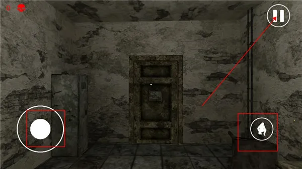 4、进入游戏,左边的按钮可以控制角色移动,右边可以控制角色蹲下,滑动屏幕可以切换不同的视角。
