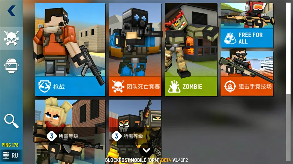 2、游戏内有丰富的玩法模式,包括枪战、团队死亡竞赛、狙击手竞技场等,玩家可以选择自己喜欢的模式开始游戏