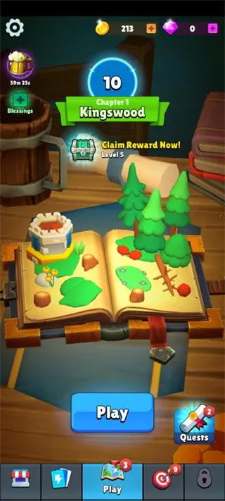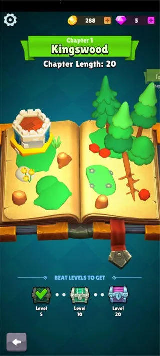 2. 收集战利品卡片,升级塔和弓箭手提升战力,成功击杀怪物进入下一场景。