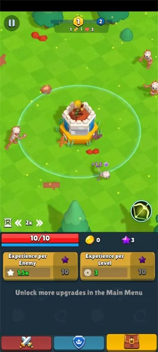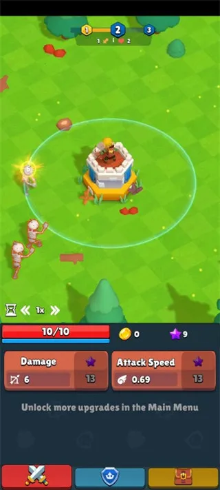 它有着趣味十足的玩法。操作简单,你能控制力度和角度,不断击败处于不同位置的对手,感受一箭暴击、一箭阵亡的刺激。升级弓箭手和塔是关键,升级弓箭手可提升攻击伤害,升级塔能提升血量和防御力,合理升级属性发挥更强作用。随着关卡递增,怪物增多,升级资源数量还能让你击败怪物时获得更多资源。觉得游戏速度慢?增加倍速就行。每到一定关卡还有强大boss等你挑战,多种场景主题带来不一样的射击乐趣。快来下载体验,保卫你的王国,成为最优秀的弓箭手吧!