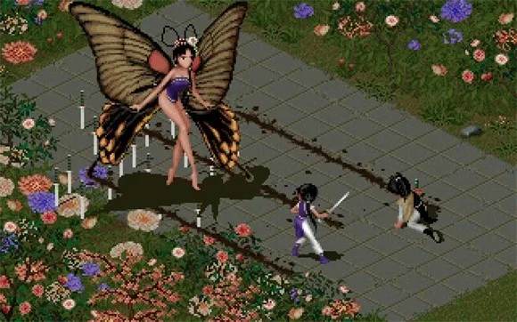 24、打败两名士兵後再打败假的国王..解决後请把自己的体力、真气全补满最好记录...走出後到中间水池中与拜月教主战斗(钱都用乾坤一掷丢了..)把那家伙干掉後就可以欣赏『悲惨』的结局了。