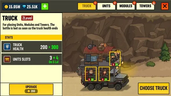 你可以建造和升级建筑物,与盟国一起拓展土地、提升战斗力。还能运用强大策略,招募英雄角色分配到卡车上增加战力,部分英雄有专属技能,能量条蓄力完毕点击图标就能释放。通过升级卡车,不仅能提升英雄等级、增加卡车位置数量,还能解锁更多攻击区域,让更多人员上阵杀敌,扩大火力覆盖。